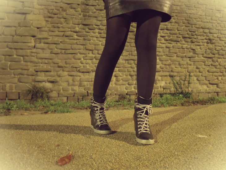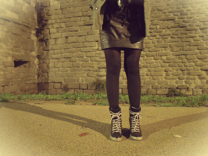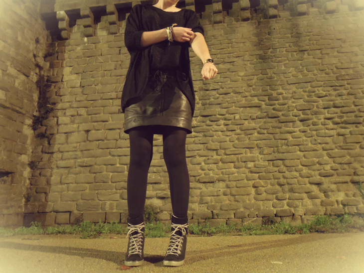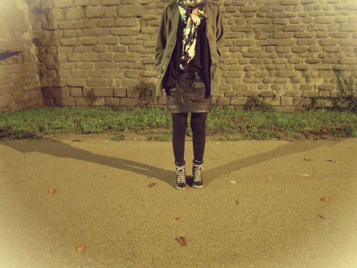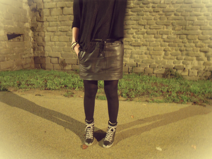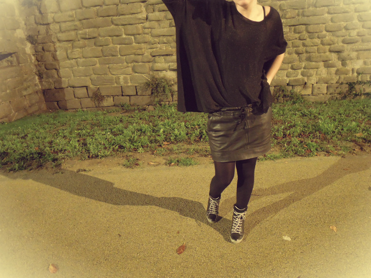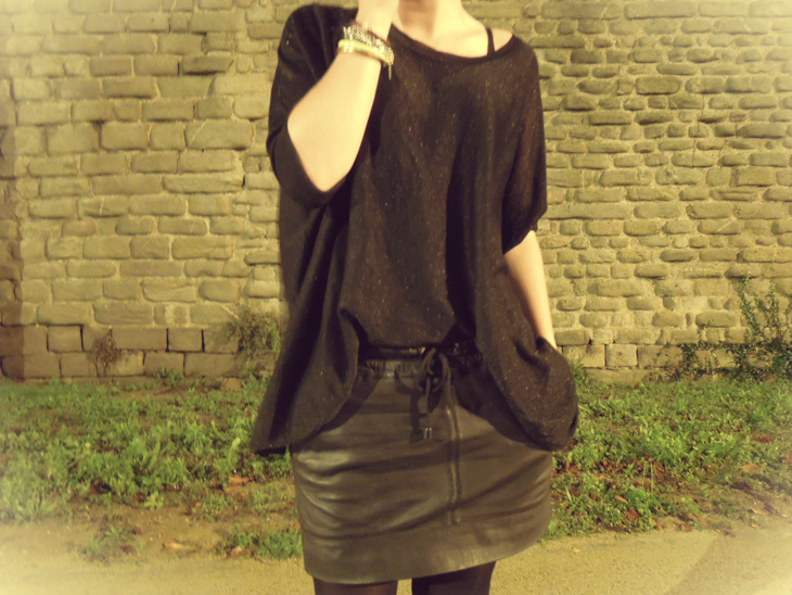 Et enfin la plus récente : LA jupe en cuir parfaite trouvée chez Mango il y a quelques mois. Portée une bonne partie de l’été sans collants, elle fait également son petit effet avec. (Pour info elle est toujours disponible sur le site ici)