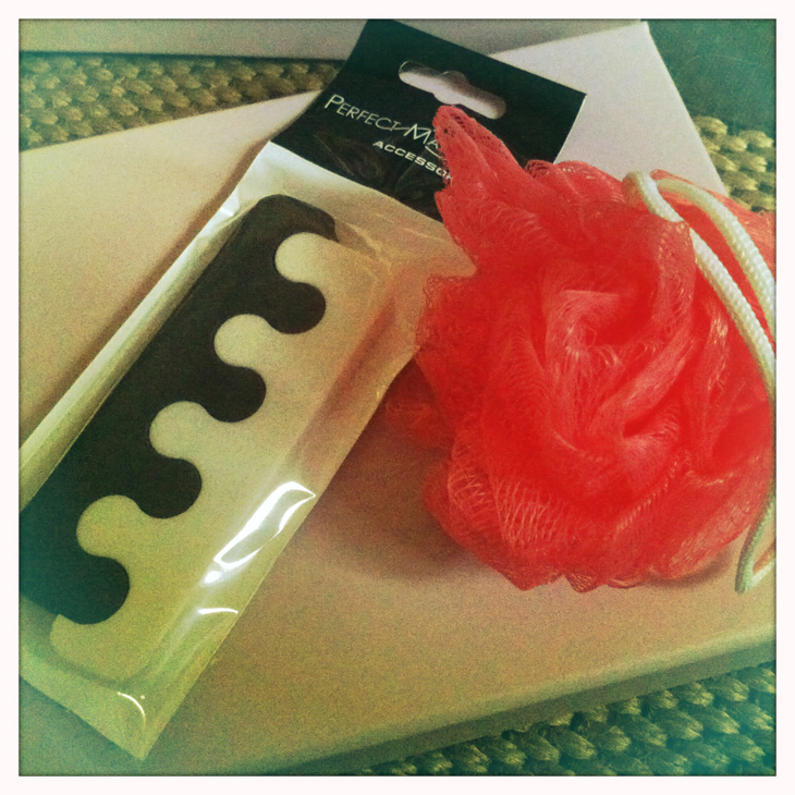 La fleur de douche est, selon moi, trop petite. Les écarteurs d’orteils, je ne m’en sert jamais. Et je déteste le thé vert à la menthe… En gros, je n’ai pas du tout aimé les goodies, et ils vont surement finir à la poubelle… Dommage.