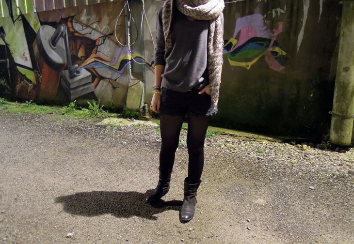 1ère visite sur ton blog: bravo pour le courage de sortir en short, je ne sais pas ce qui nous pousse à vouloir rester à tout prix jolie malgrè un froid sibérien, le look est très sympa!!!