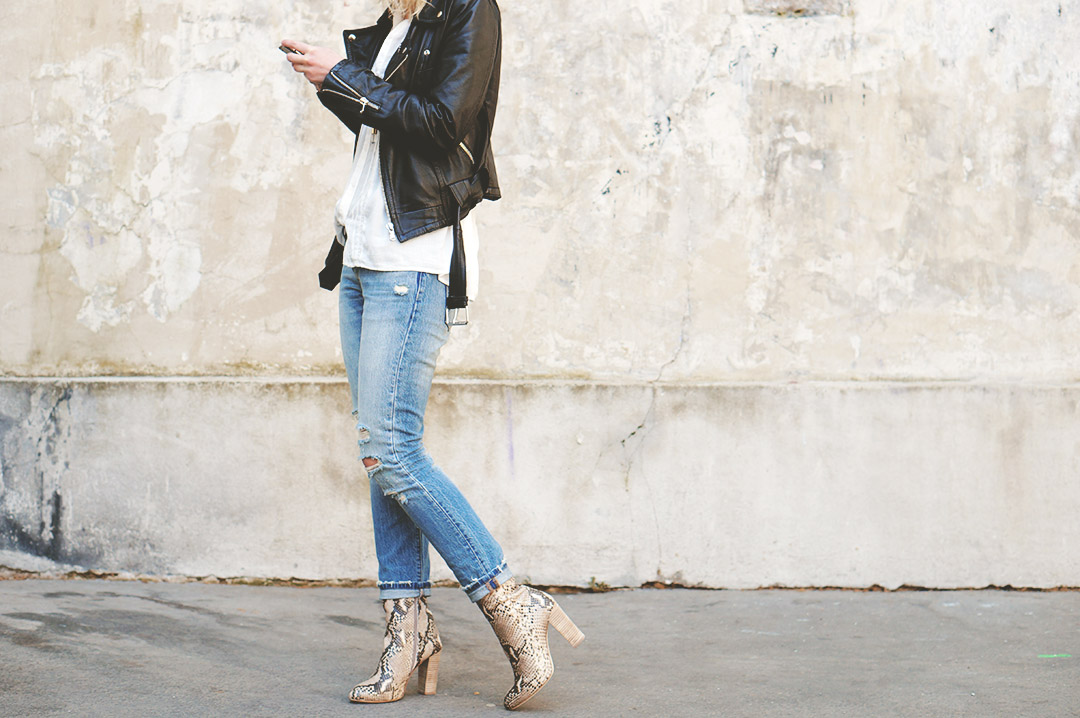 Wow ! Un look vraiment canon et ces talons sont juste parfait avec ce jean et ce perfecto ! J’adore cette association. :)
