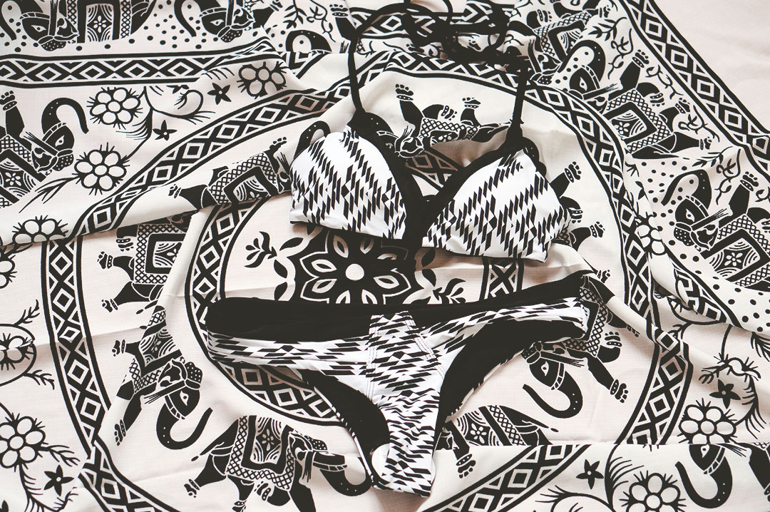 On commence par ce joli maillot de bain Khongboon* vendu sur le site Carla Bikini (spécialisé dans le beachwear et les maillots de bain) qui s’accorde parfaitement bien avec mon nouveau foulard/paréo Sheinside *.