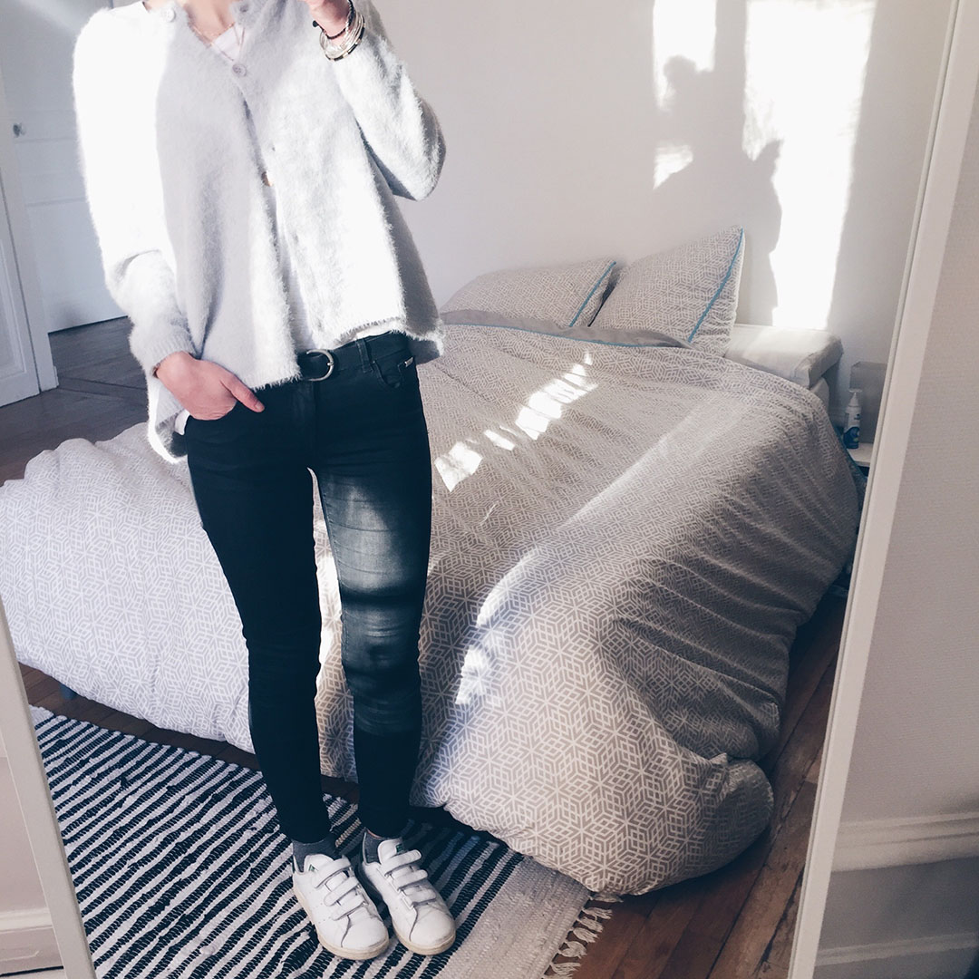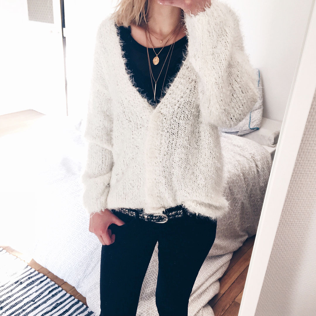 De mon côté, c’est plutôt pas mal ! Et ce, non seulement, parce que j’ai deux nouveaux gilets chouchous ! Ouais, il en faut peu… (Que voulez-vous, on s’accroche à ce qu’on peut en attendant la fin de l’hiver hein.)