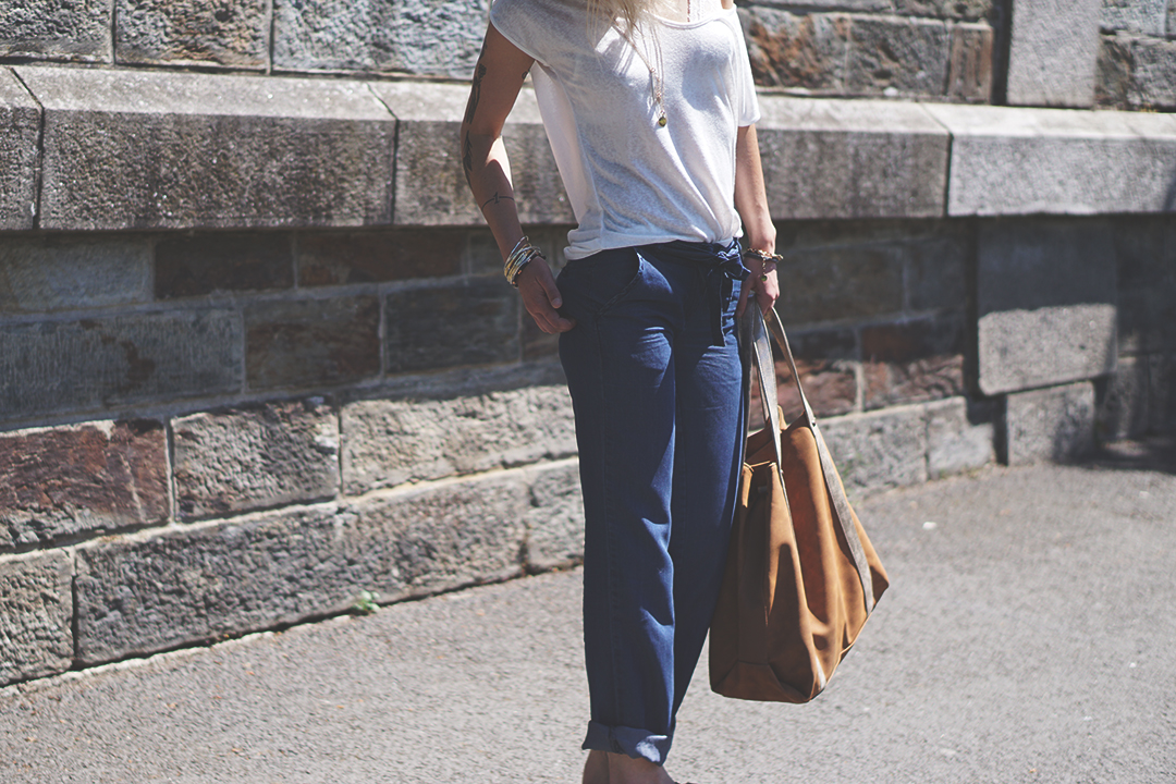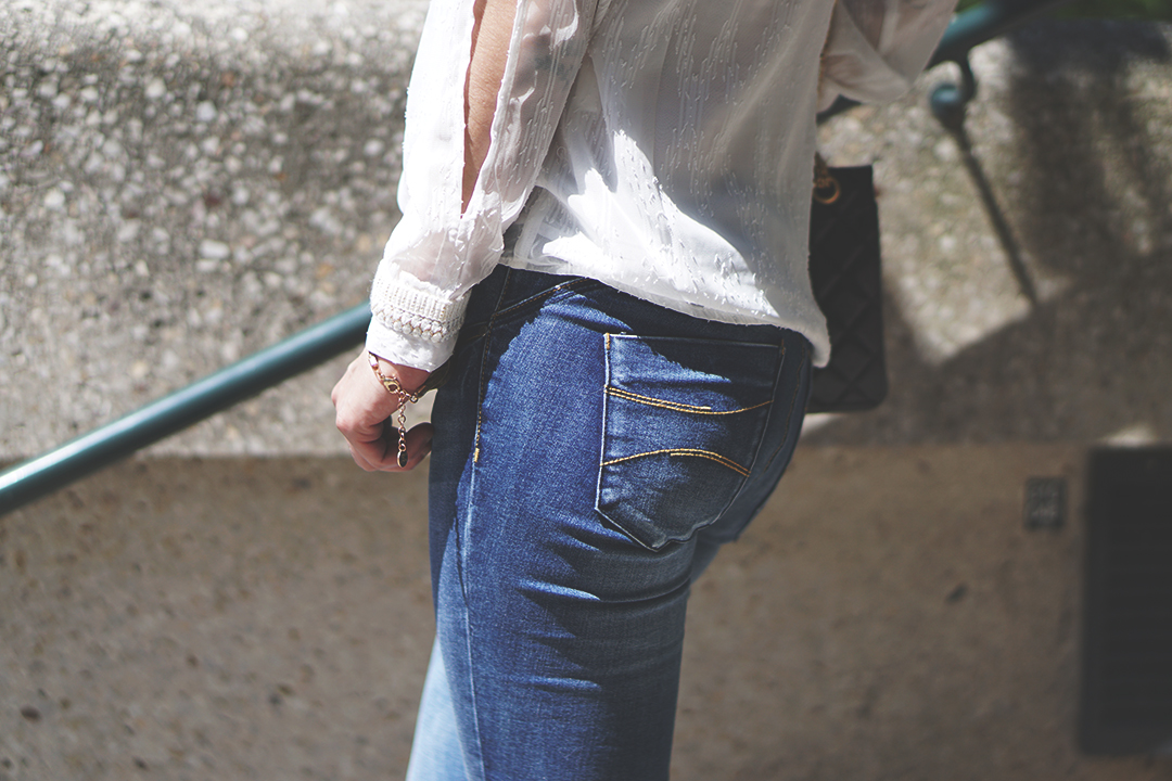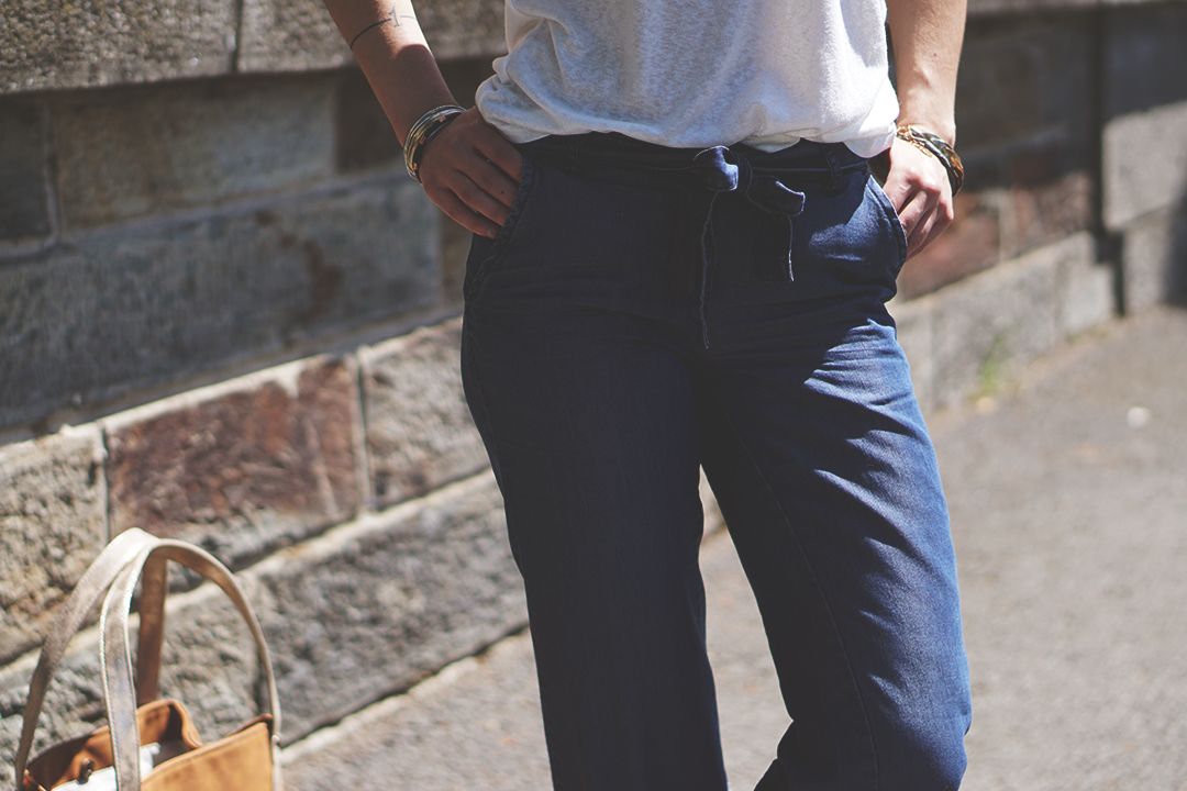 Même si les températures commencent enfin à se réchauffer, j’ai préféré jouer la carte de la prudence en optant pour un jean ultra fluide plutôt qu’un short ou une robe.