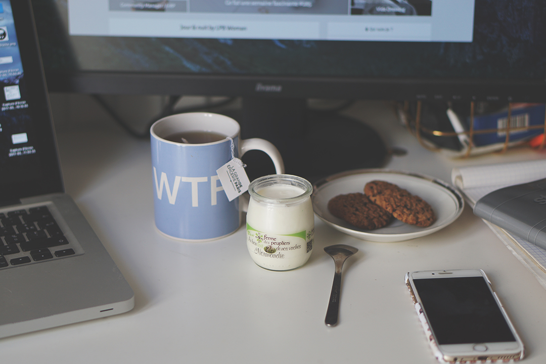 1 thé (ou 1 café) sans sucres. (Bon ok, j’ai mis un peu de miel dedans. Je sais c’est pas bien)