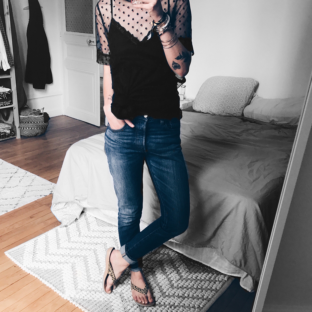 Robe en tulle portée en top Shein * // Jean Levi’s 501 skinny // Tongs Crocs *
