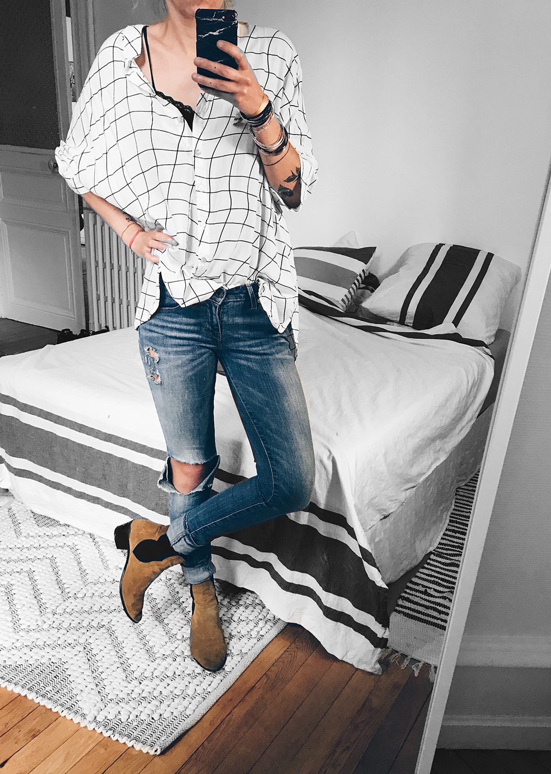 Robe/Chemise/Blouse Shein *, jean Levi’s (similaire ici), boots Mango