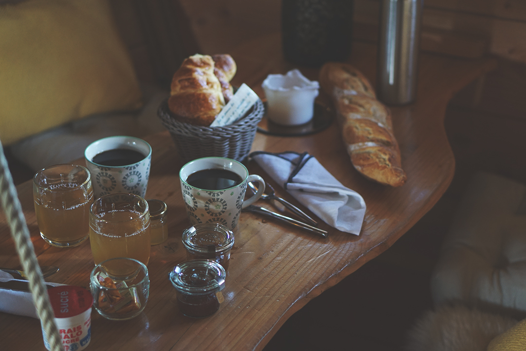 Le lendemain matin, c’est toujours dans un incroyable calme que nous nous sommes réveillés avec un petit-déjeuner qui n’avait rien à envier aux plus grands hôtels. Le temps était beaucoup plus clément, ce qui nous a permis de nous promener sur les 25 hectares du domaine et d’aller voir tous les petits animaux de la ferme qui y séjournent ainsi que les autres cabanes et la roulotte.