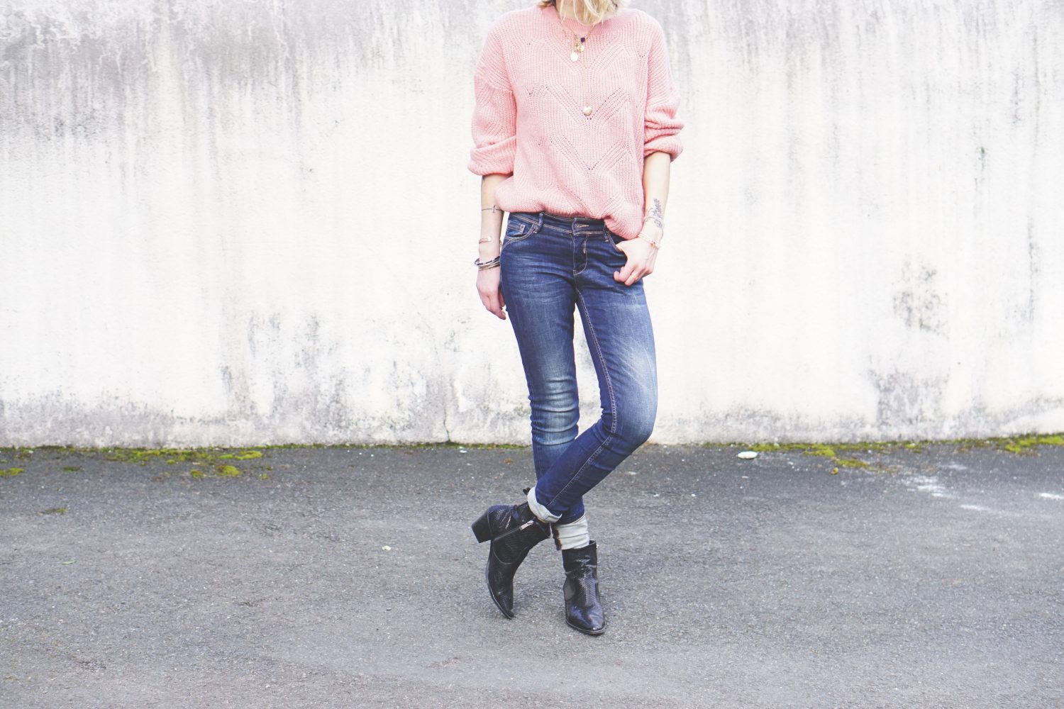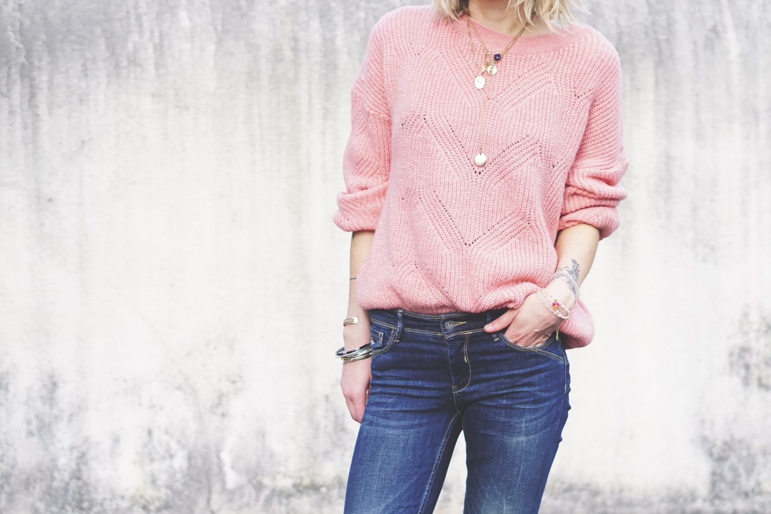 Et puisque l’on parle de couleur, je suis enfin sortie de ma zone de confort avec ce pull rose. Oui, ROSE. Comme quoi tout peut arriver. Bon, rassurez-vous, il n’y aura jamais de Desigual par ici… (Certes, il ne faut jamais dire jamais, mais quand même !)