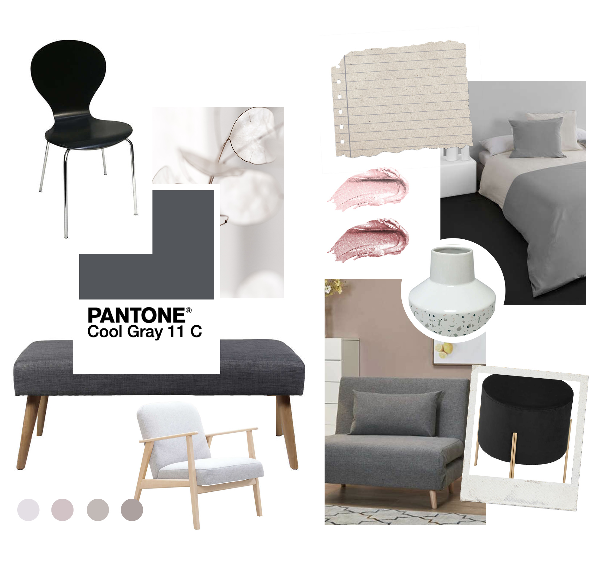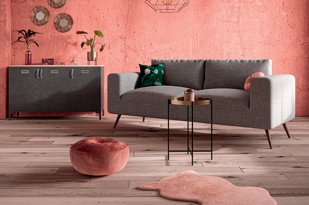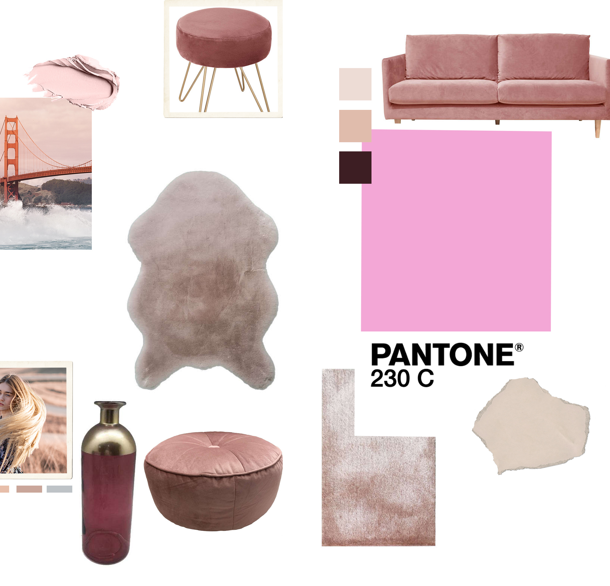 Tabouret Blush // Canapé en velours // Tapis Carpette // Vase // Pouf Powdery // Tapis Glitty