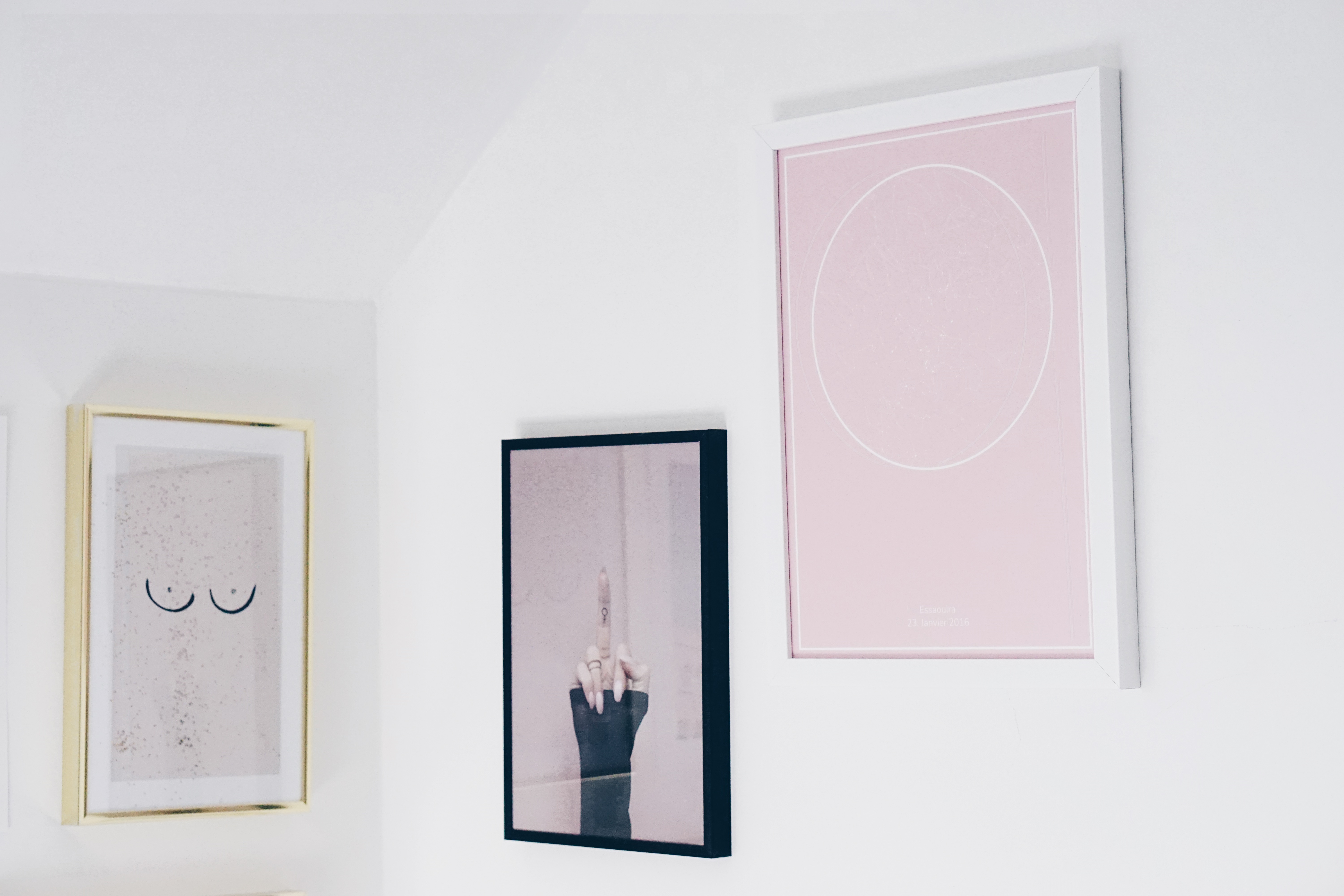 Je n’ose pas compter, mais je crois que je suis atteinte d’une collectionnite aigüe de cadres. Qu’ils s’agissent d’affiches de concerts, de photos perso, de reproductions d’oeuvres, d’illustrations, d’images issues du cinéma ou encore à l’effigie de mes artistes préférés ; j’ai dû faire un sacré paquet de trous dans mes murs pour tout installer !