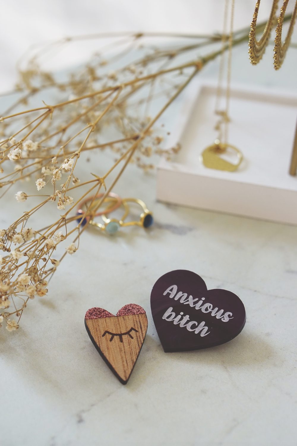 La « Anxious bitch » de Laura Coupeau que je vous avais déjà montré en story sur Instagram et qui me correspond parfaitement. Je vous invite vivement à aller faire un tour sur son shop, toutes ses broches sont ultras décalées, j’adore !