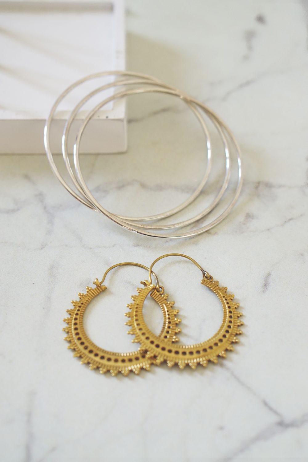 Bref, j’ai donc reçu : ces trois jolies bagues en argent doré et cuivré, cette paire de boucles d’oreilles, puis celle-ci, et enfin 3 joncs en argent. Tous ces bijoux viennent d’Inde et ils sont vraiment CANONS ! *