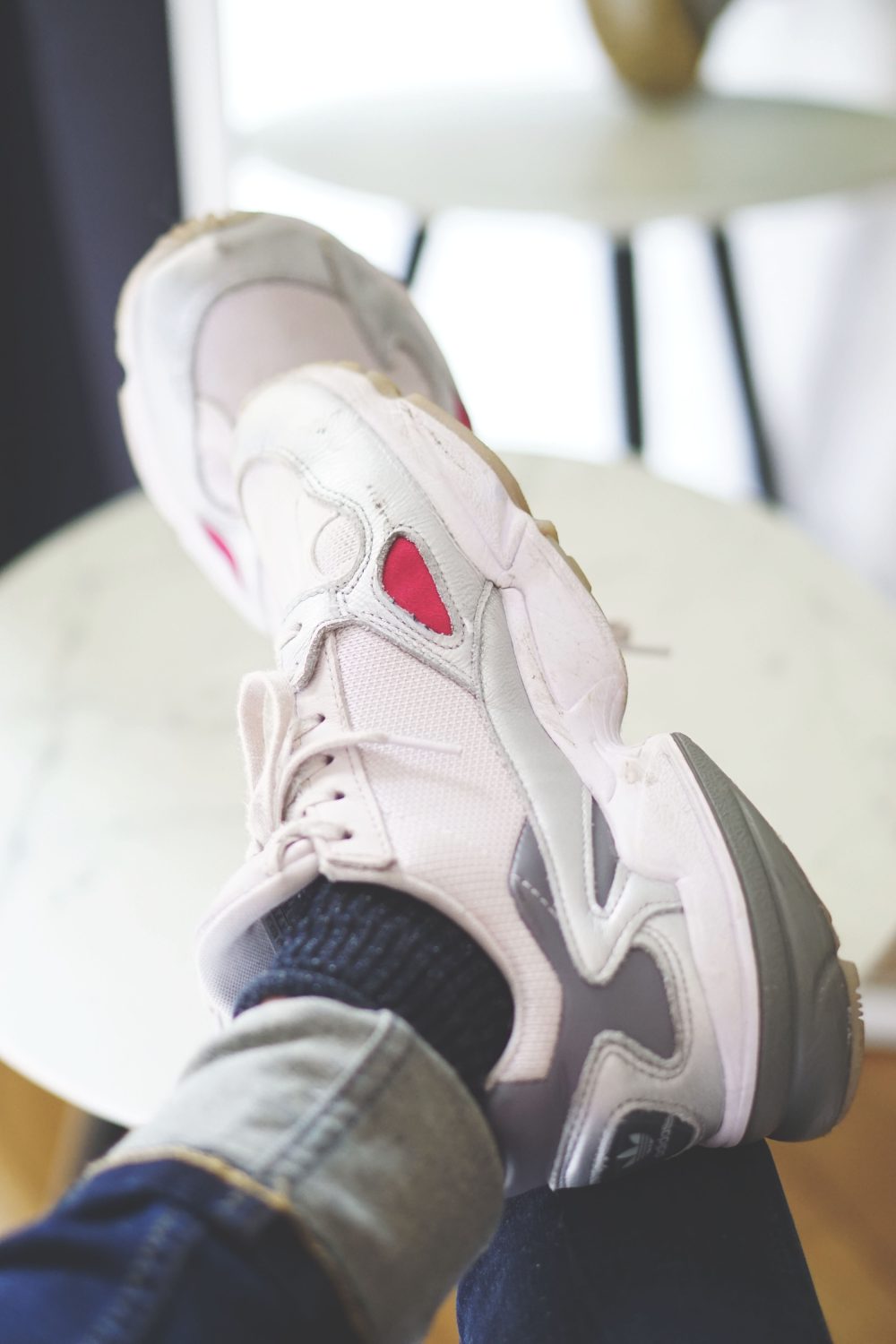 Pour terminer, et celles dont je vous parlais en début d’article, les fameuses Adidas Falcon via Spartoo *. Je les adore ! J’avais peur qu’elles soient compliquées à porter mais finalement elles vont avec tout ! Je me tâte même à en prendre dans un autre coloris… Mais je doute que cela soit bien raisonnable, ahem…